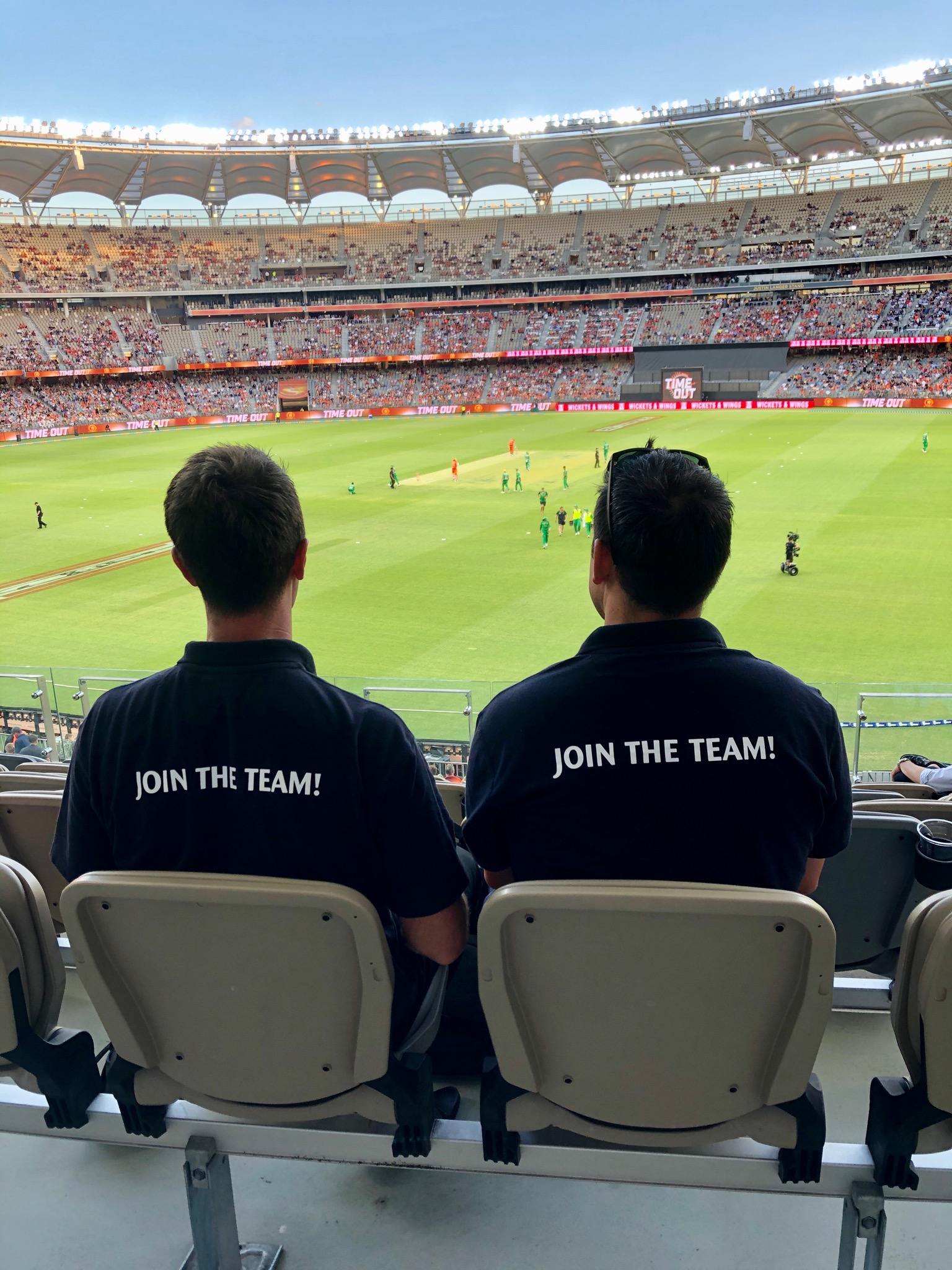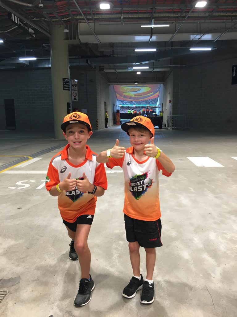 Tim and Kai got to meet a player, get a hat signed by a scorcher player and have a little chat to them while standing out in the middle of the ground in front of 26,000 people.